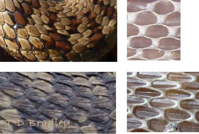 2' Augenlider beweglich, mehrere Längsreihen von Bauchschuppen (s. Abb. unten rechts)