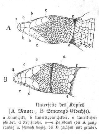 12' Große Eidechsen, Rücken ohne dunkle Längsbänder. Morphologisch sicher nur an der Kehlfärbung der Jungtiere zu unterscheiden, sonst anhand der Herkunft zu unterscheiden